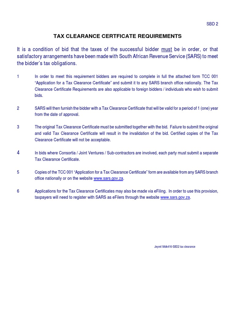 2 a tax clearance certificate (tcc) confirms that you are a taxpayer registered with sars and that your tax affairs are in order, meaning you have no you then click the tax clearance certificates tab on the left hand side of the screen.